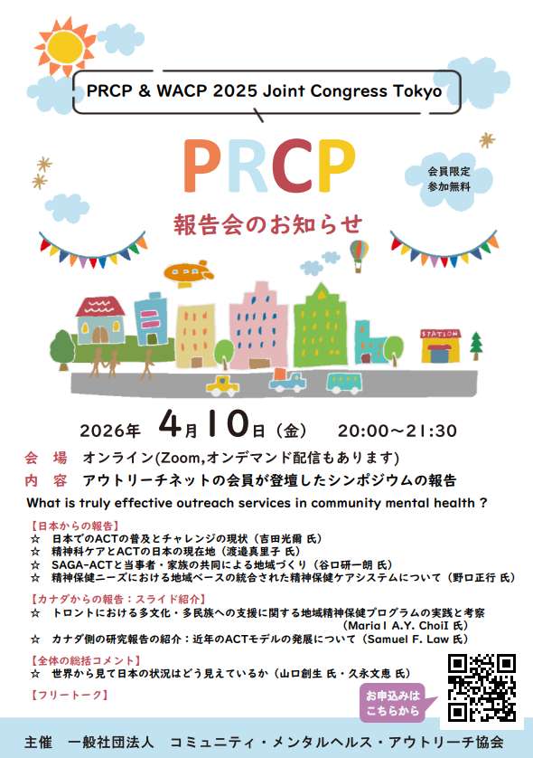 このたび、一般社団法人コミュニティ・メンタルヘルス・アウトリーチ協会(通称:アウトリーチネット)では、2026年5月に第4回全国大会を行うことになりました。